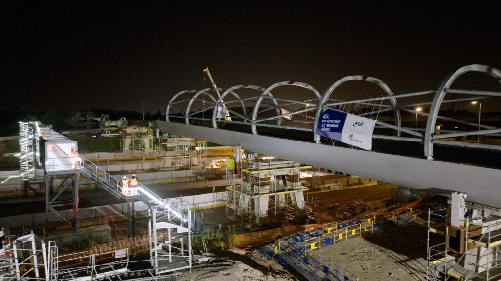 Il viadotto, composto da sette campate e dal peso complessivo di 1.000 tonnellate, è stato interamente assemblato a terra nell’area di Gonesse, tra gli aeroporti di Charles de Gaulle e Le Bourget. Successivamente, la struttura è stata spostata nella sua posizione definitiva attraverso un’operazione di lancio altamente precisa.